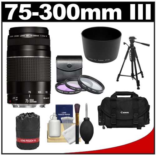 Canon EF 75-300mm f/4-5.6 III Zoom Lens + Canon 2400 DSLR Gadget Bag Case + 3 UV/FLD/CPL Filters & Lens Hood & Pouch + Tripod + Accessory Kit for Rebel XS, XSi, T1i, T2i, T3, T3i EOS 40D, 50D, 60D, 7D Digital SLR Cameras Overview | Sale - Review & Buy at Cheap Price